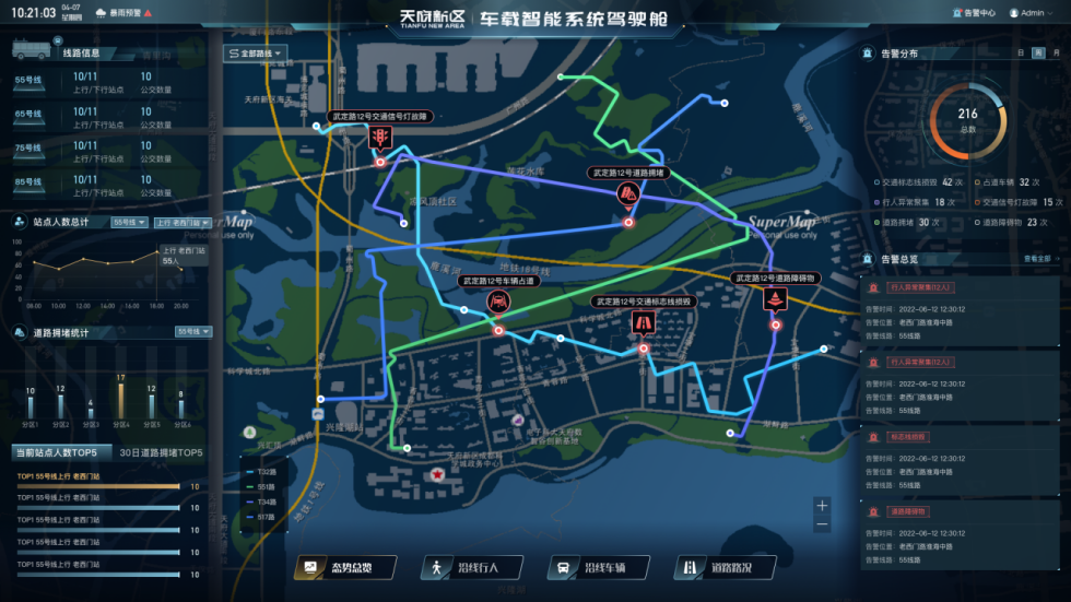 總體態勢:站點人數、行人車輛事件、道路各路況事件統覽