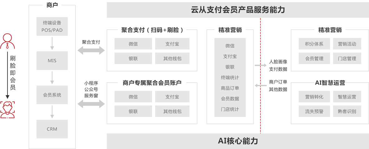 • 銀行:打通銀行線上開戶、認證、營銷到線下支付的閉環;AI賦能銀行提供數字化升級解決方案服務客戶;增強銀行和商戶合作的粘性