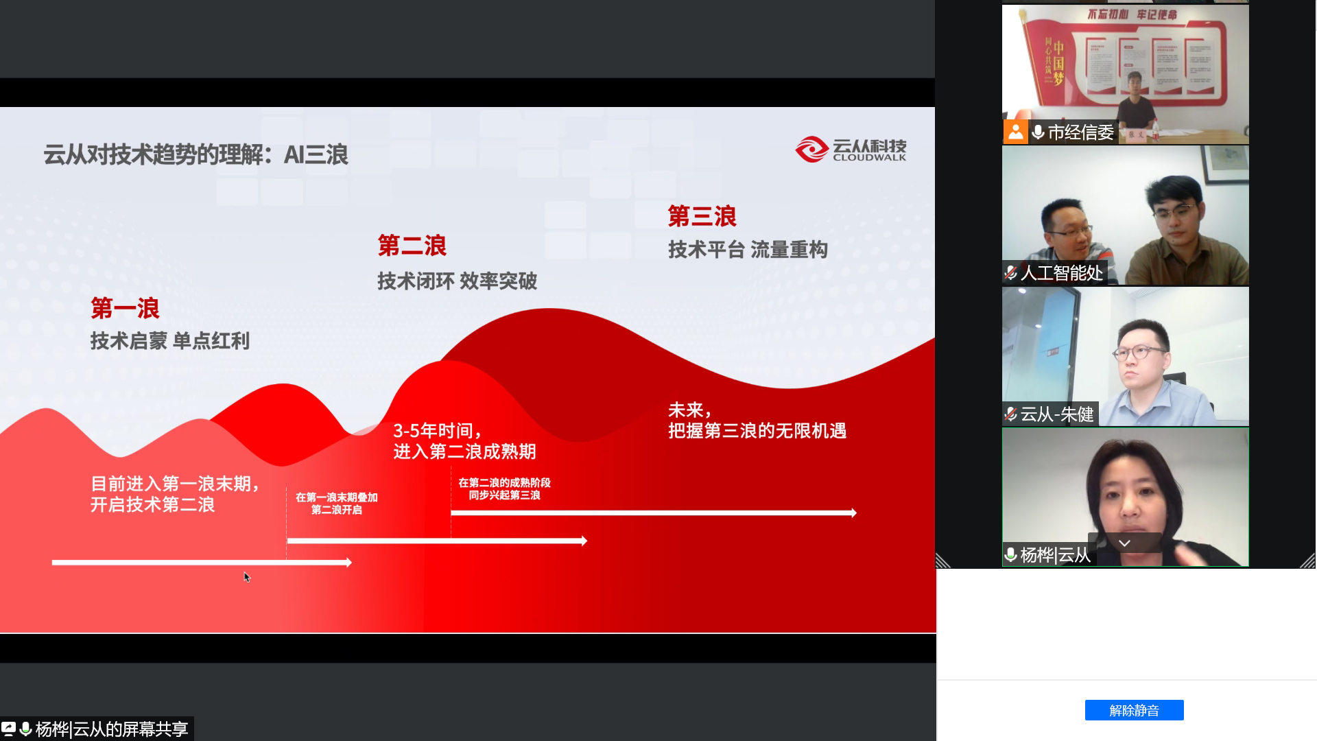 近日,中共上海市經濟和信息化工作委員會副書記張義帶隊,圍繞復工復產、企業創新驅動等方面,與云從科技在云端開展交流調研。云從科技集團黨委書記、高級副總裁楊樺介紹公司最新發展情況,并圍繞公司核心戰略下的CWOS平臺打造進行了匯報和交流。