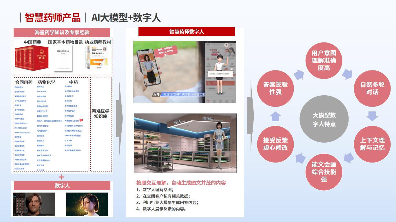 云從科技成功中標某國有藥廠醫藥大模型項目,通過人工智能、云計算、大數據、人機交互等核心技術,助力該企業推進“四化”改造過程。這也是云從科技智能化賦能的標桿案例。