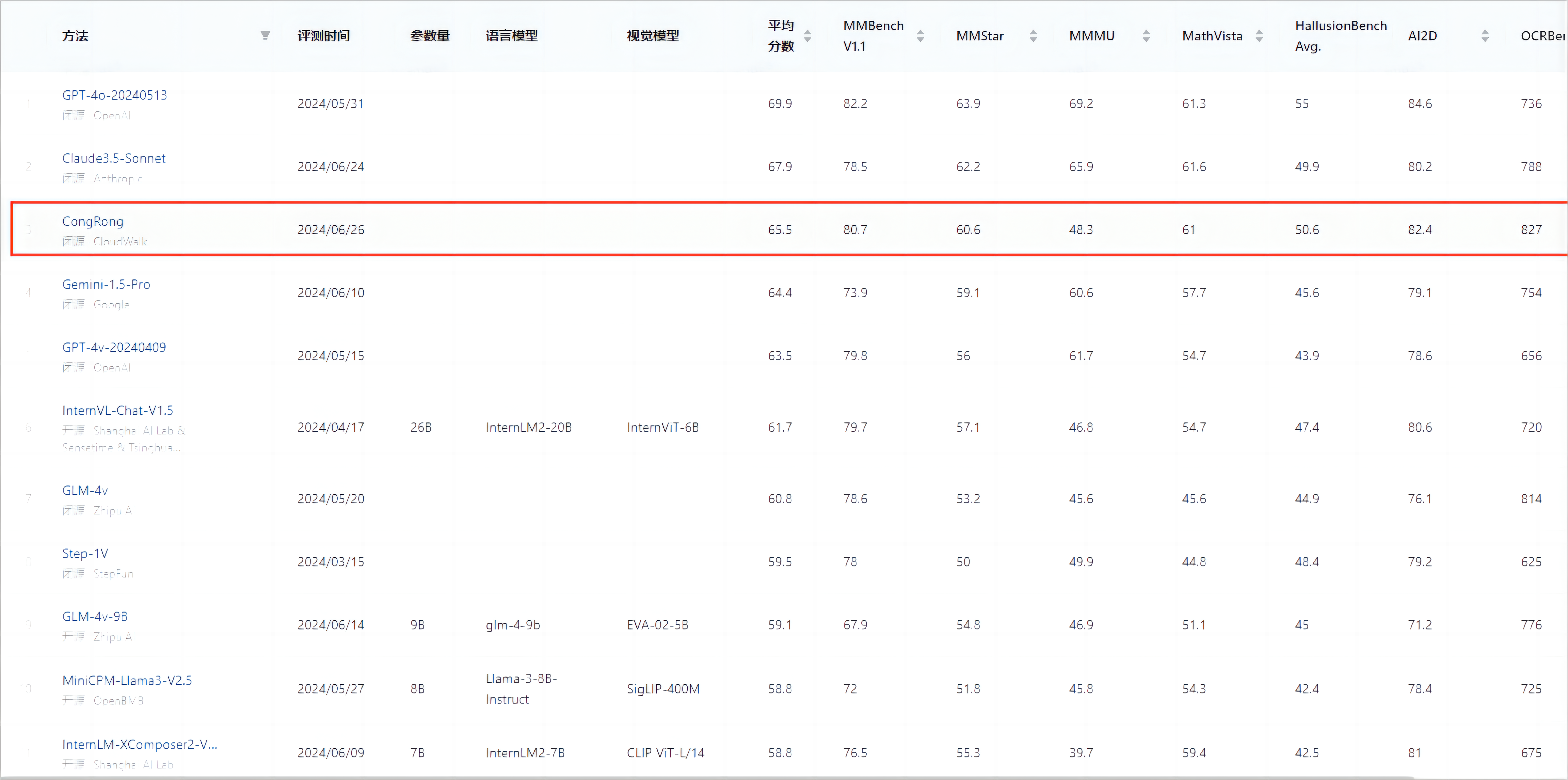近日,云從科技從容大模型在綜合評測權(quán)威平臺OpenCompass的多模態(tài)評測領(lǐng)域中取得重大進(jìn)展。