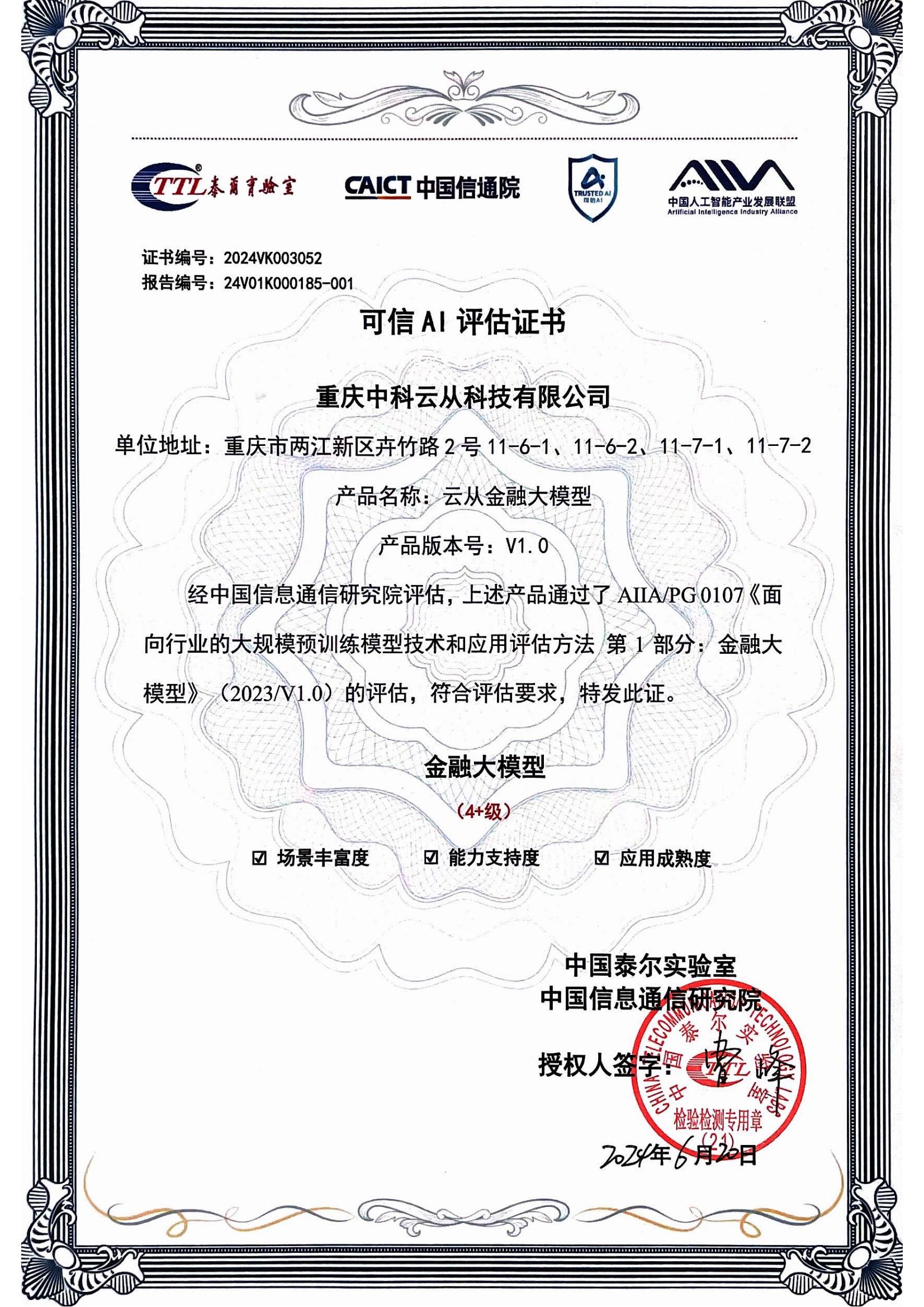 近期,云從科技金融大模型在中國信息通信研究院(以下簡稱“信通院”)的嚴格的測試和評估中脫穎而出,不僅通過了《面向行業的大規模預訓練模型技術和應用評估方法 第1部分:金融大模型》標準,還獲得了最高級別的4+評分,這標志著云從科技在行業大模型研發和應用方面取得了重大突破。