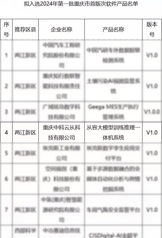 近日,重慶市經濟信息委員會公布本年度首批市級首版次軟件產品名錄。云從科技從容大模型訓推一體機系統以其卓越的兼容性和技術創新力脫穎而出,成功入選。